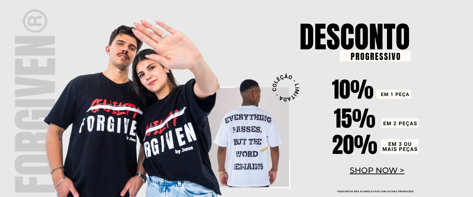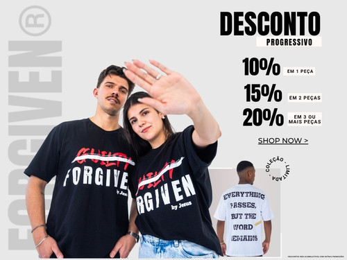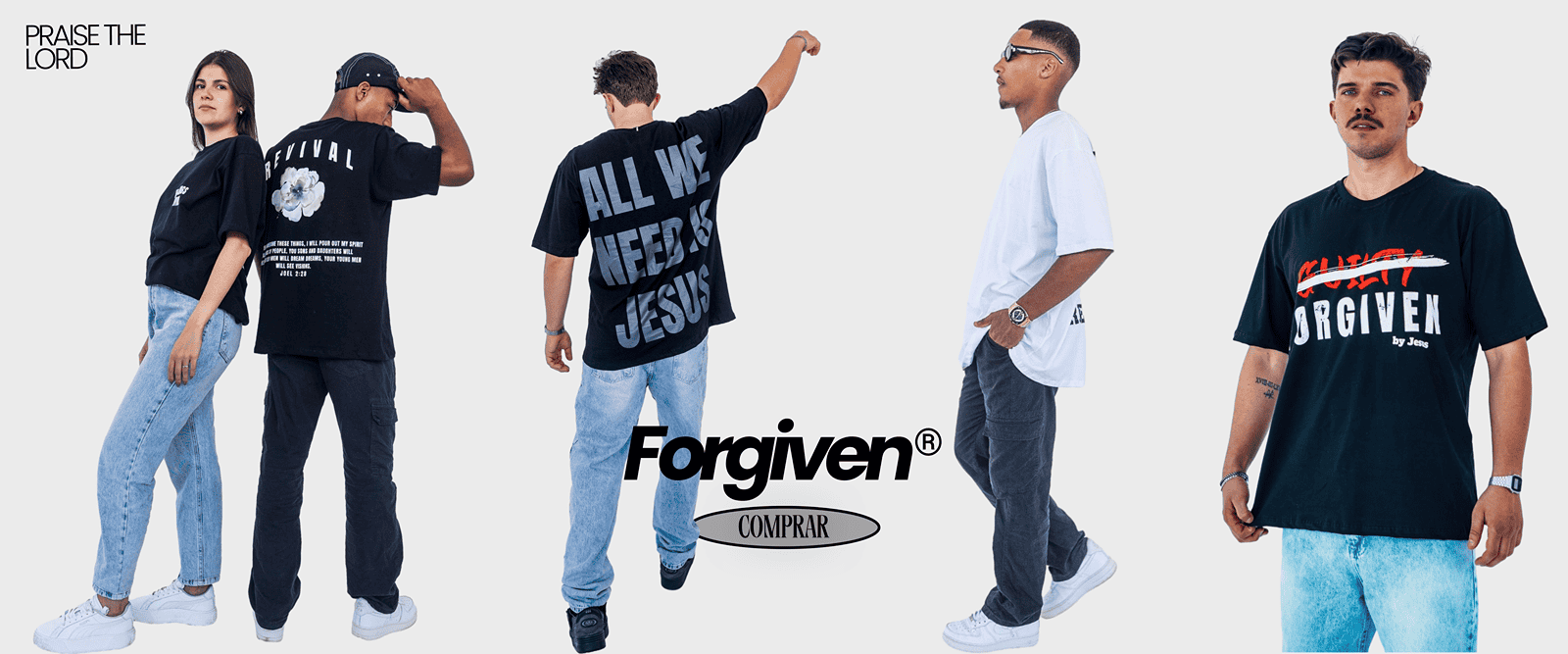 A FORGIVEN nasce com alguns propósitos, mas o maior deles é a missão de carregar o maior amor da história, com isso queremos ganhar vidas e levar a palavra de forma impactante, sutil e ao mesmo tempo expressiva através dos nossos produtos! Nós queremos e temos o compromisso de falar de JESUS, porque a dor dEle foi sentida e compartilhada, mas o amor prevaleceu. Ele escolheu nos salvar, perdoar e acima de tudo, ficar. Estamos aqui para te lembrar e dividir esse caminho com você.